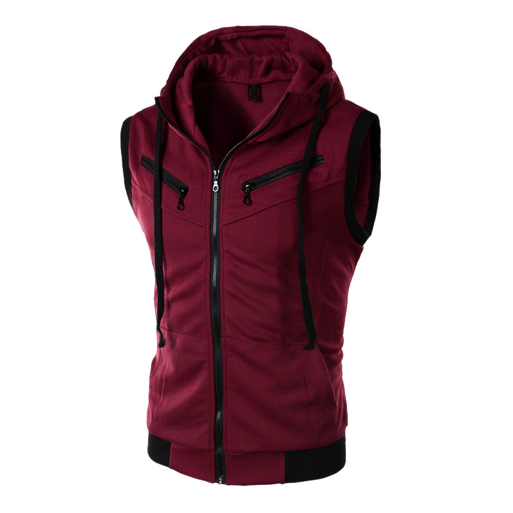 Men's Sleeveless Sports Coat Casual Slim Fit Hooded Hoodies Vest Waistcoat